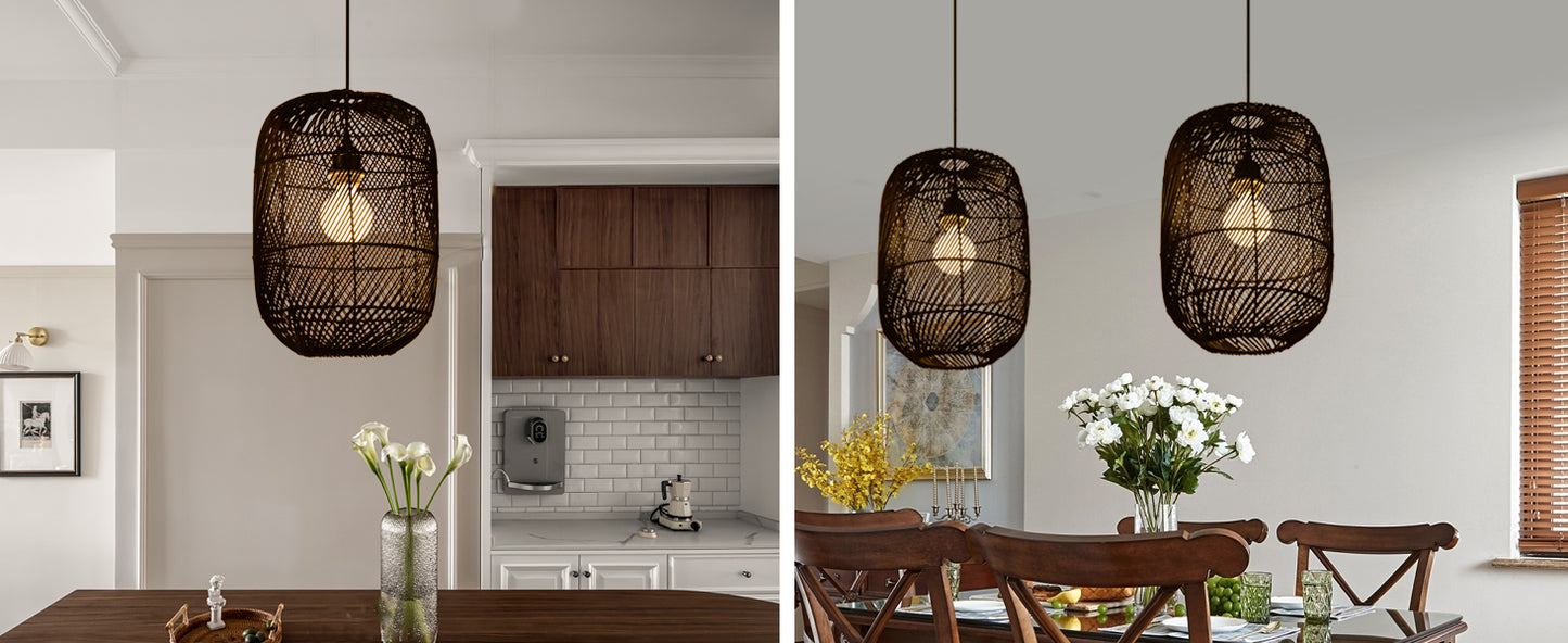 This pendant light is made of high-quality rattan, hand woven, and has a delicate surface. The rattan material has excellent breathability and durability, adding a touch of rural charm to your home.
