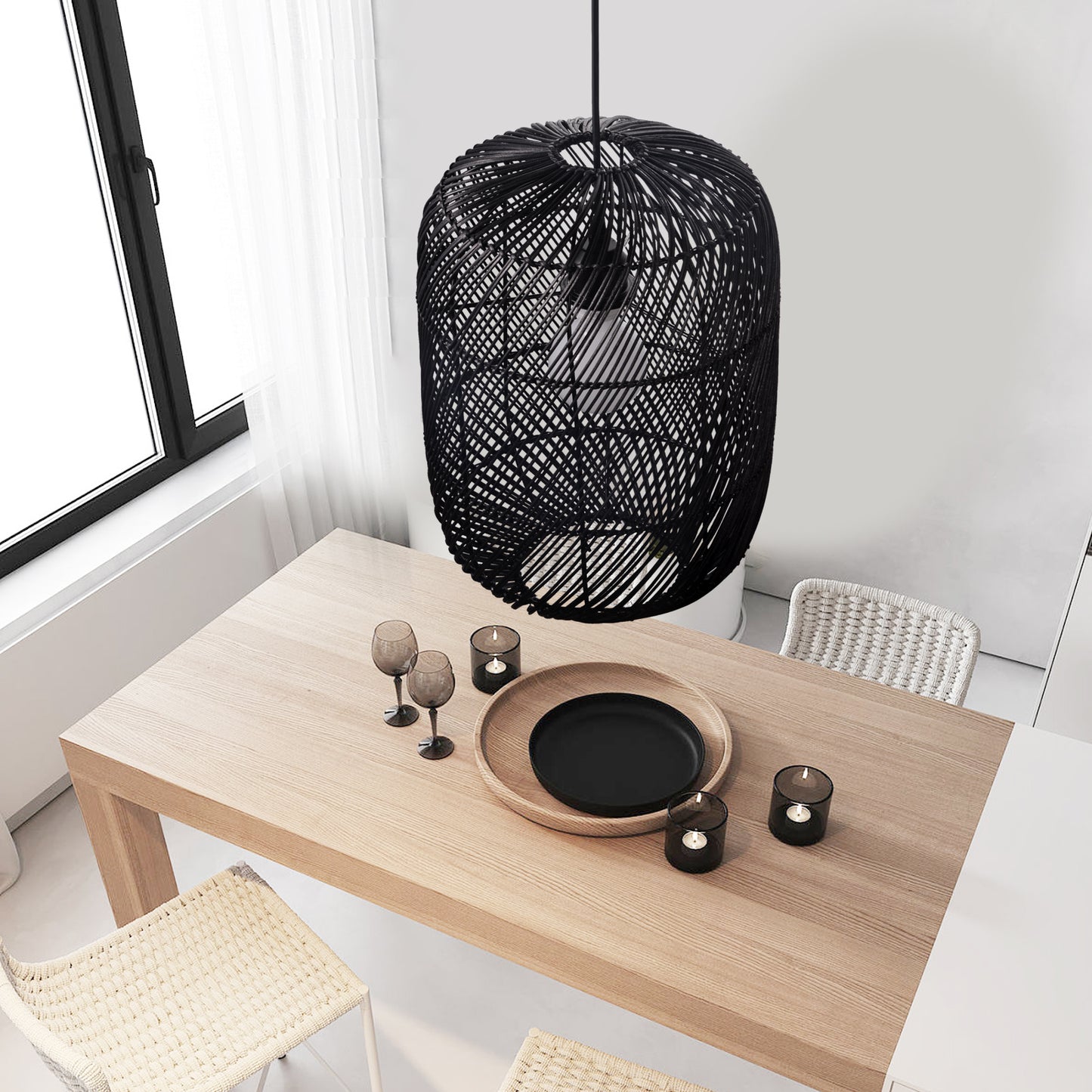 This lamp blends elements of bohemian style, combining black metal frame with wicker details. This fusion preserves the delicacy of traditional craftsmanship while showcasing the simplicity and modernity of contemporary design. Whether in a minimalist living room or a retro style dining area, this lamp seamlessly integrates to enhance the space with its exquisite appeal.
