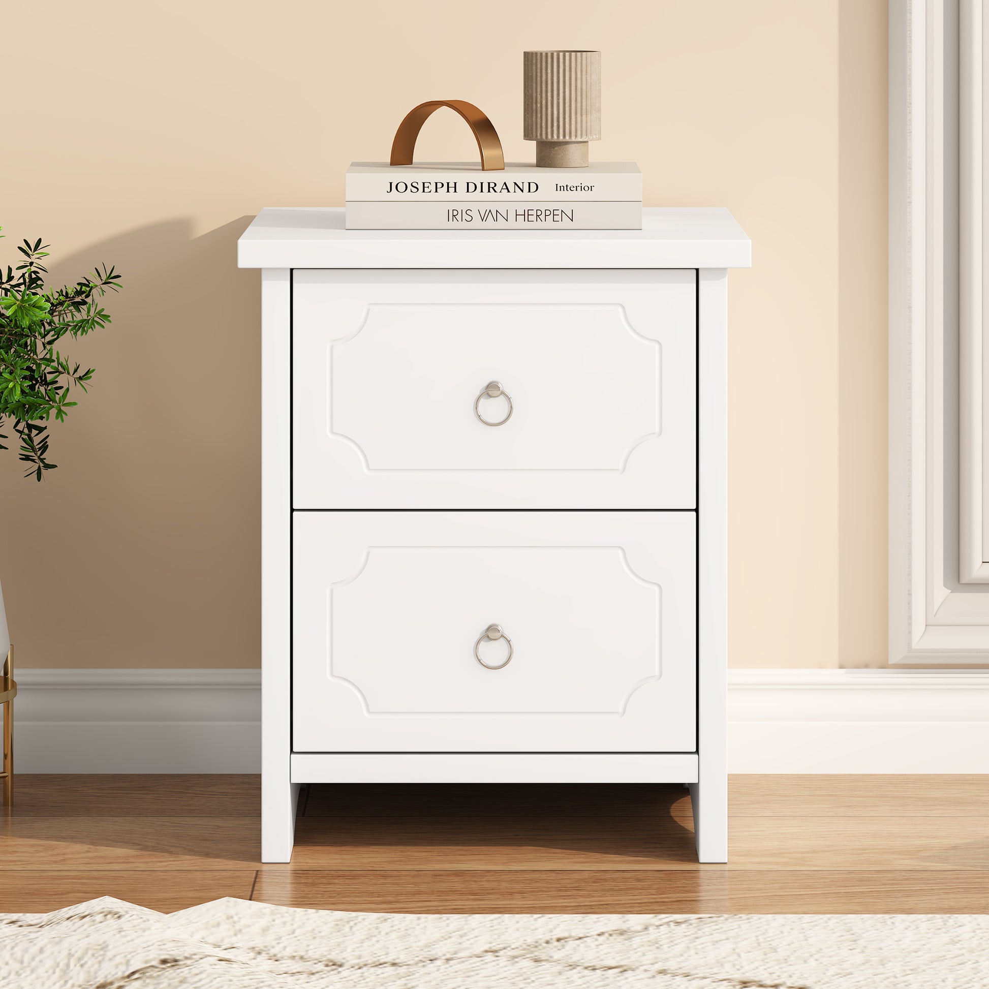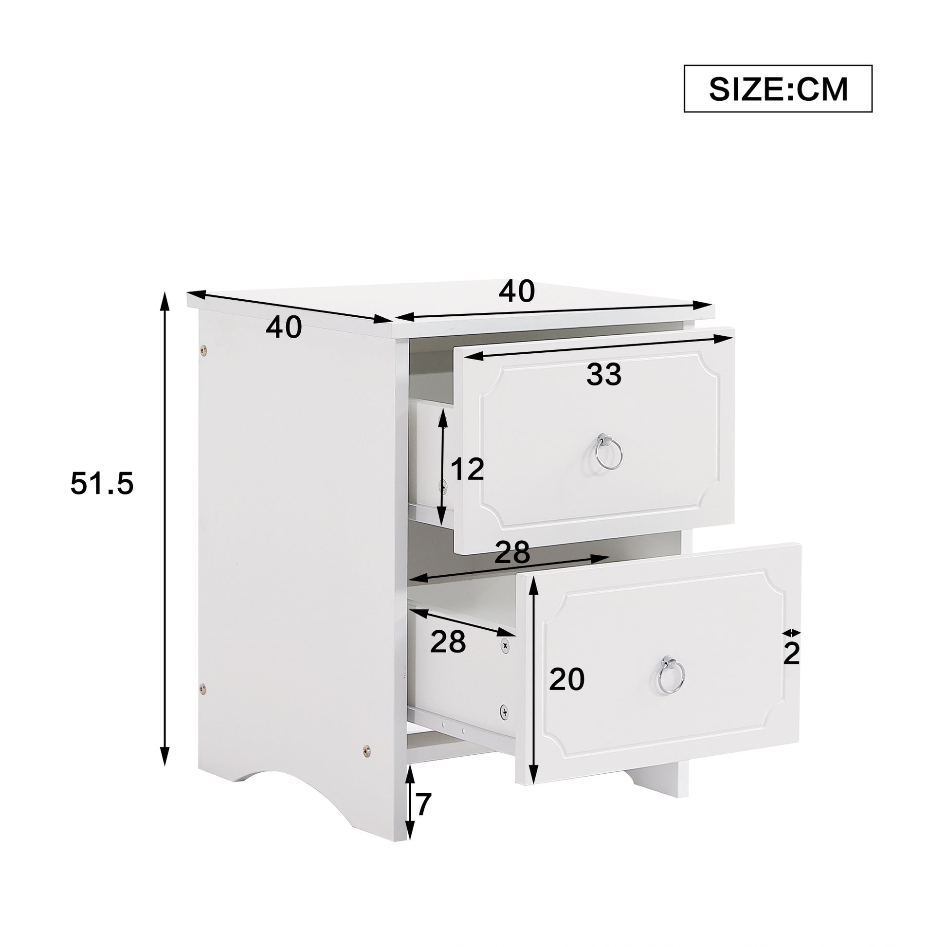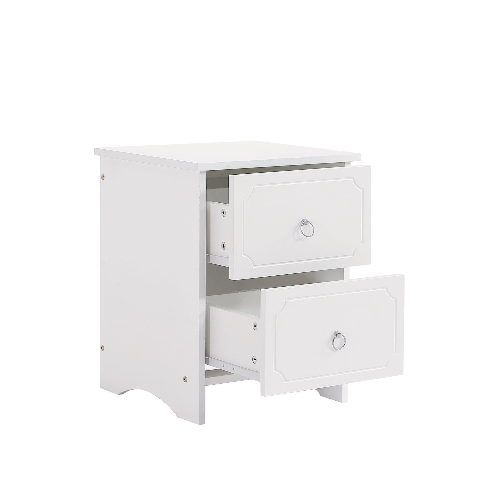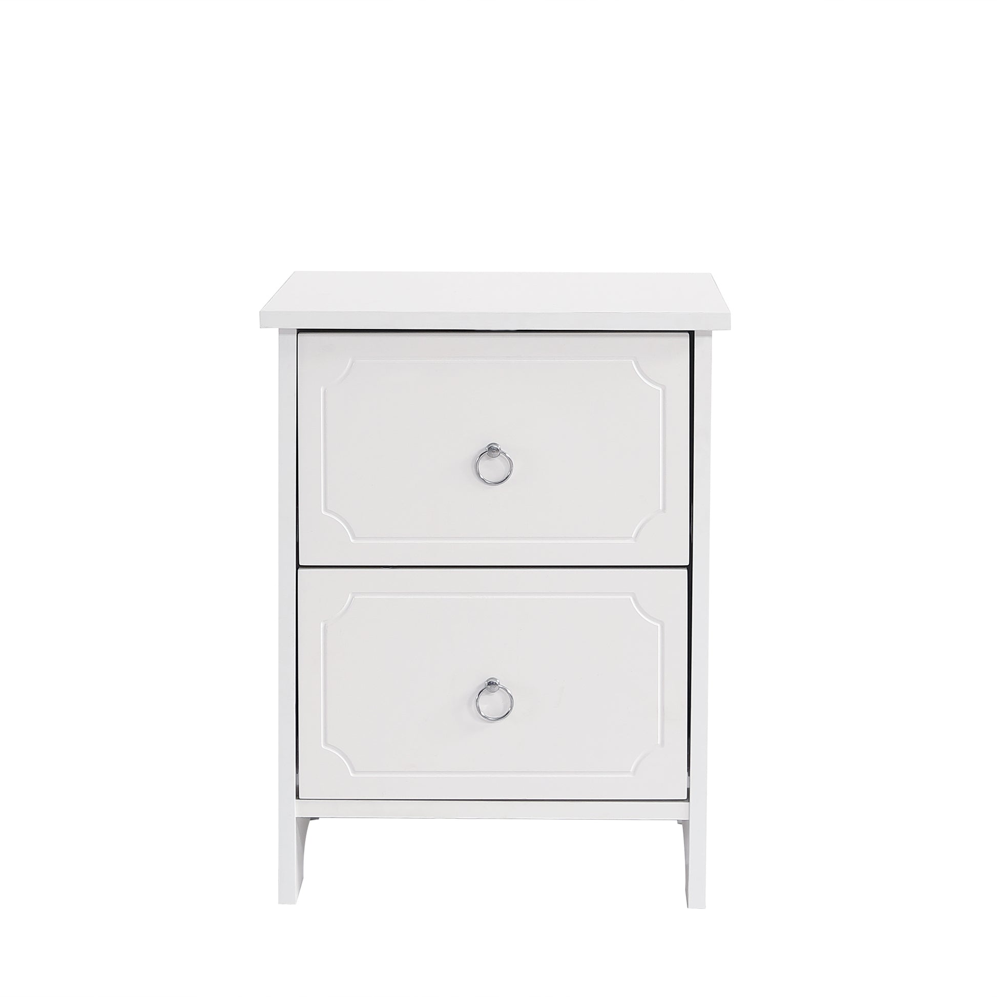 White 2-Drawer Bedside Table with Silent Glides and Embossed Edge