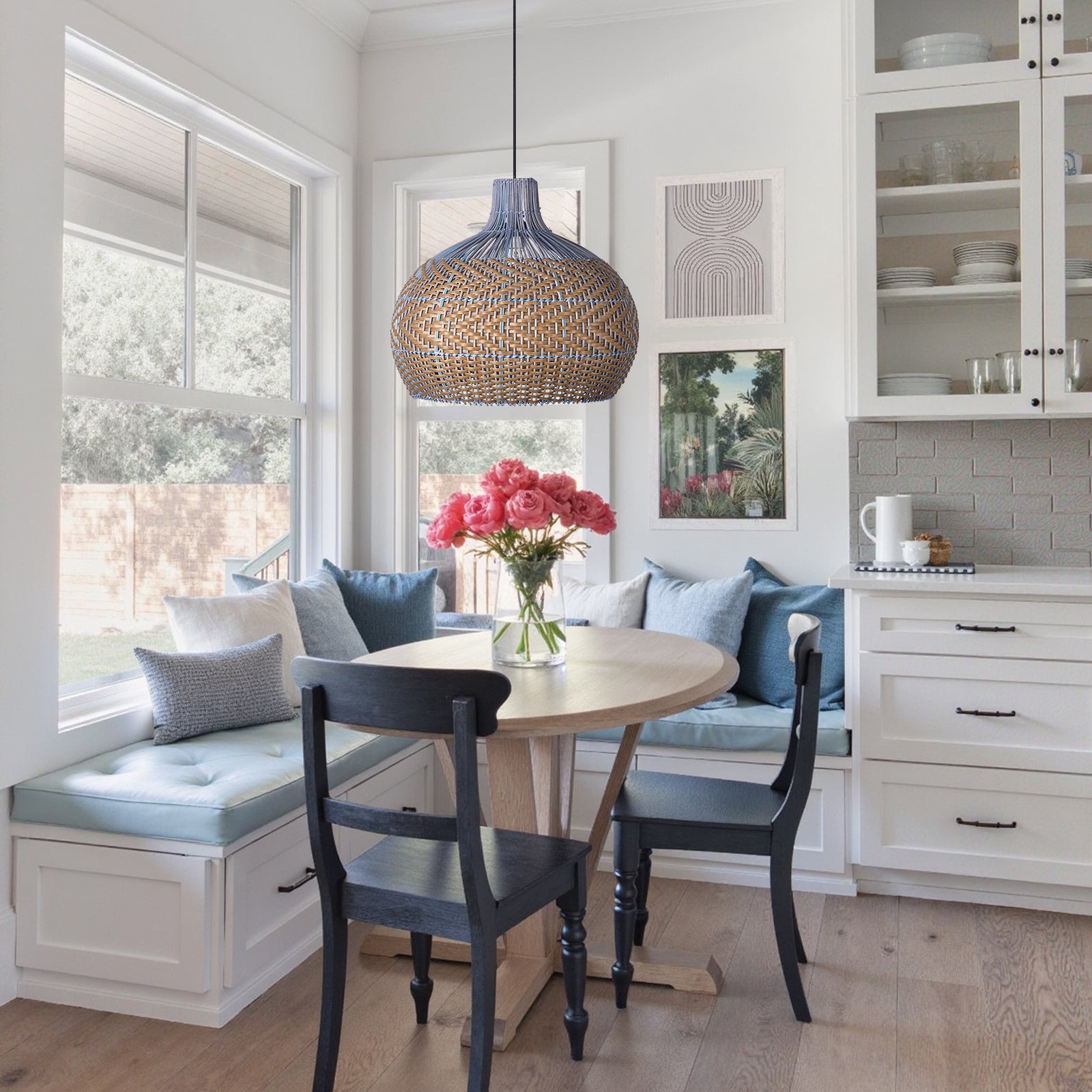 The classic cylindrical rattan shade provides even, diffuse illumination. Its woven texture eliminates harsh shadows and creates a balanced visual appeal, offering both functional brightness and a touch of elegant simplicity that elevates the ambiance of any room.