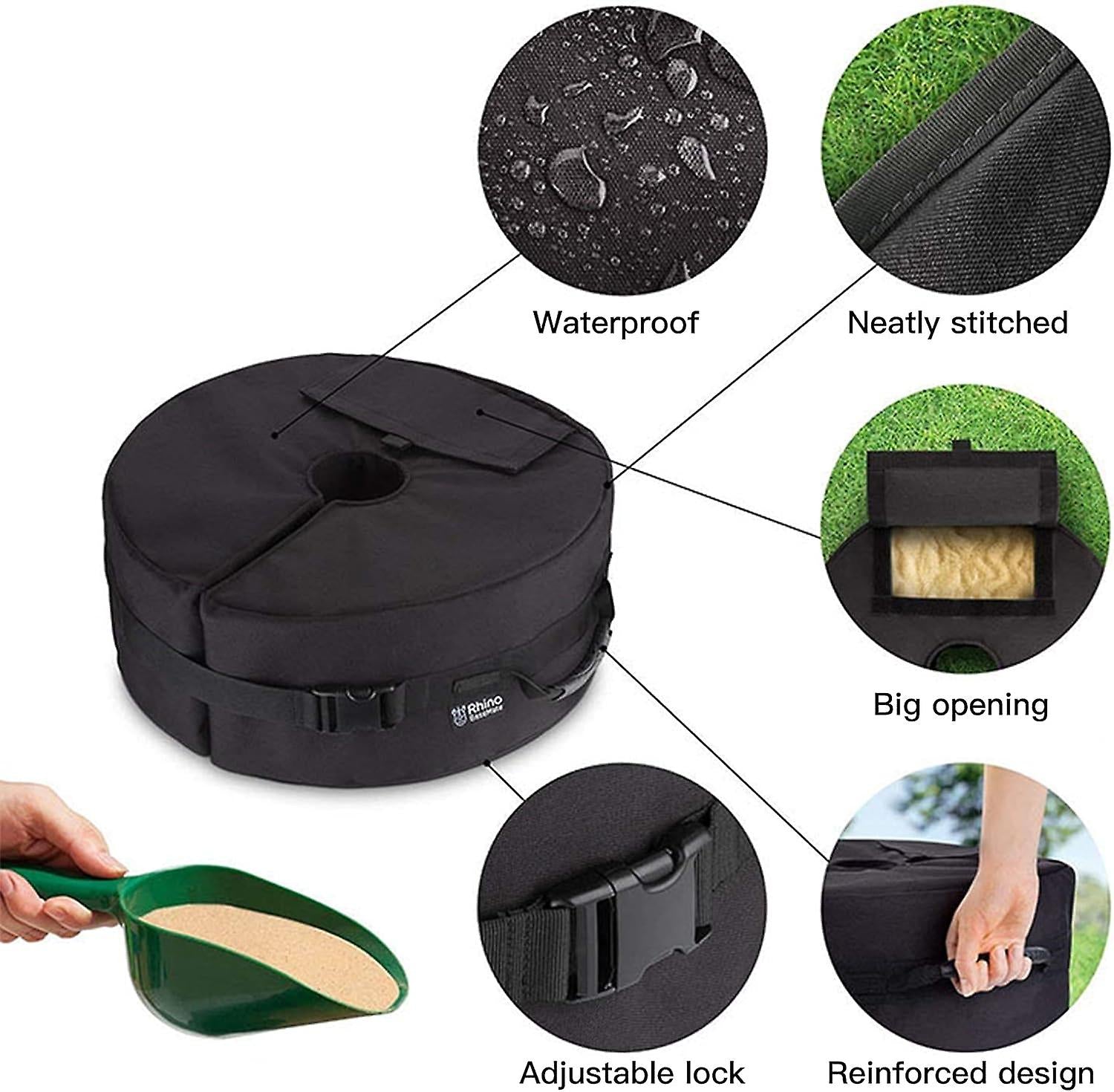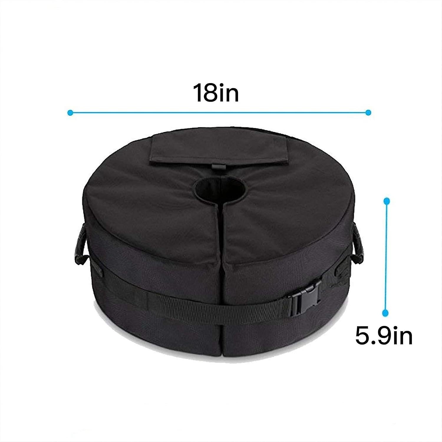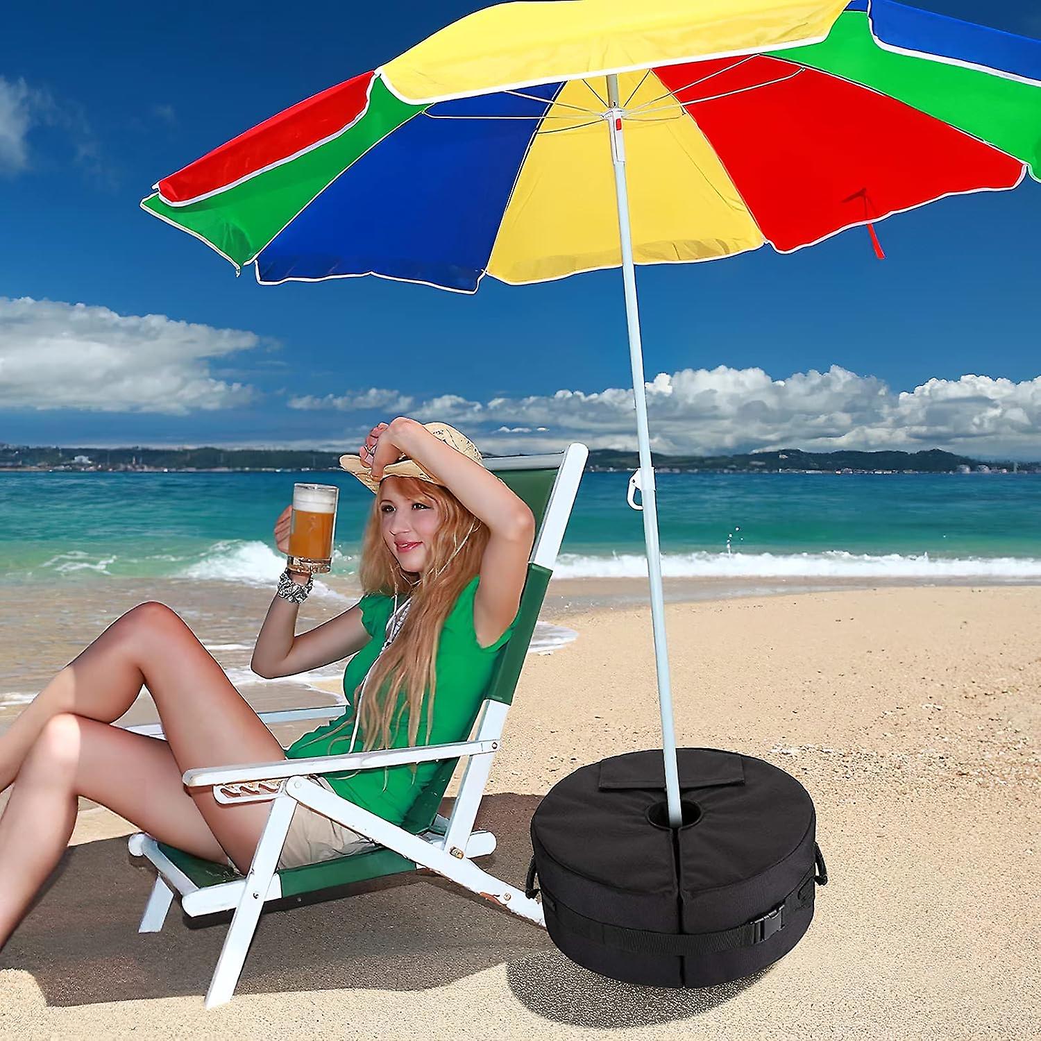 Premium Material: Made of high quality 600D oxford fabric, waterproof, sun-protective, strong and durable, won't crack or tear. Amazing sturdiness can ensure long-time use in horrible weather for umbrella base protection Idea and Designed: You get all the safety without the heavy set up, the umbrella base can be detachable. Durable carry handles make it easier to be set up and carried, can be folded and stored when not in use, it does not take up space, suitable for repeated use Easy To install: Just fill with sand and wrap it around umbrella pole. The side opening is large enough and you can quickly fill the bag, each bag can bear 85lb sand(sand is not included), quick release buckle strap ensure the umbrella base weight bag stay securely attached to your patio umbrella base. Enjoy Time: Get this umbrella base weight bag adds the extra weight needed to keep your umbrella stands where it should be, making you enjoy more peace of mind in gusty weather. you Never worry about your umbrella flying away again Tips: place the bag where you want it to be before you fill it with sand. It was quite a job to wrestle it into place at the base of the umbrella when you filled it. Umbrella Base Weight Bag with Side Slot Large Opening,Portable Round Patio Umbrella Base Weights Windproof Stable Sandbags with Handles for Outdoor Beach Garden Umbrella Stands (Round)
